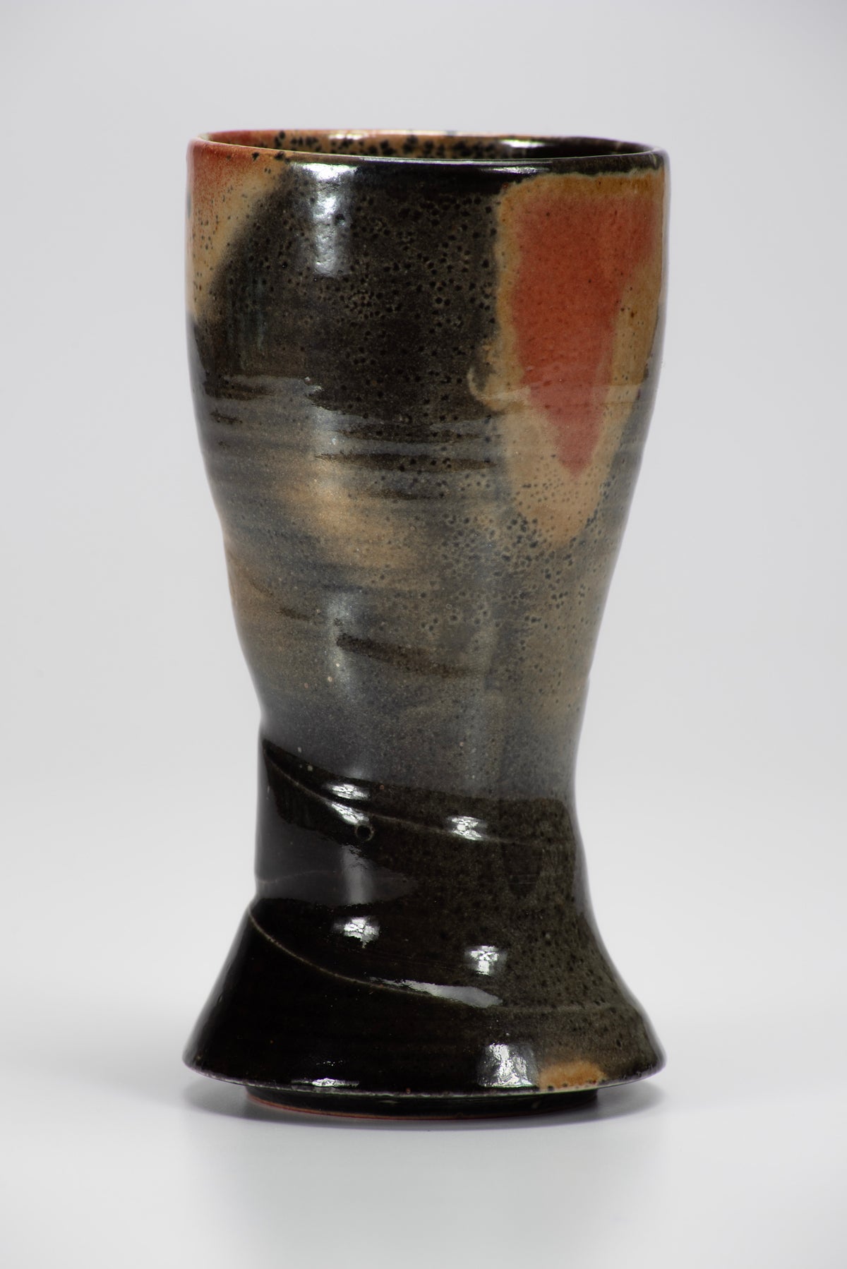 Shino glaze originated in Japan during the late 16th century, making it one of the earliest white glazes used in Japanese ceramics. Traditionally composed of feldspar, it was prized for its warm, earthy tones and unique textural qualities. Shino's aesthetic appeal lies in its unpredictable effects, which vary from creamy whites to deep oranges and mossy greens, often accentuated by subtle surface variations. In modern wood or gas-fired kilns, the reduction firing process enhances its color depth, creating rich hues through oxygen deprivation. Carbon trapping, a hallmark of contemporary Shino glazes, results in dark, smoky patterns formed when carbon becomes sealed beneath the glaze during firing. This interplay of glaze chemistry and kiln atmosphere makes Shino one of my favorite glazes. I have been working with this process since 2001 and continue to explore and discover.