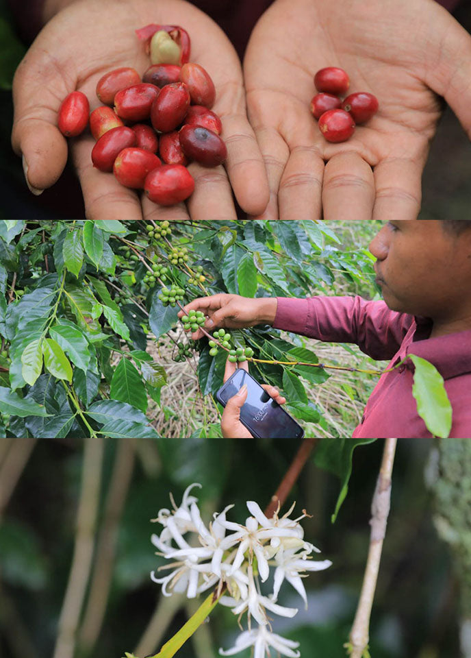 The result of this partnership is a natural-processed coffee bursting with life. This lot is a powerhouse Guji natural: intensely aromatic and overflowing with fruit. Expect bright strawberry, ripe blueberry, and dried stone fruits layered with tangy tamarind and the warm comfort of chai spices and cinnamon. A whisper of fresh rue herb adds a unique, almost wild character that reminds you exactly where this coffee comes from—deep, old Guji soil.